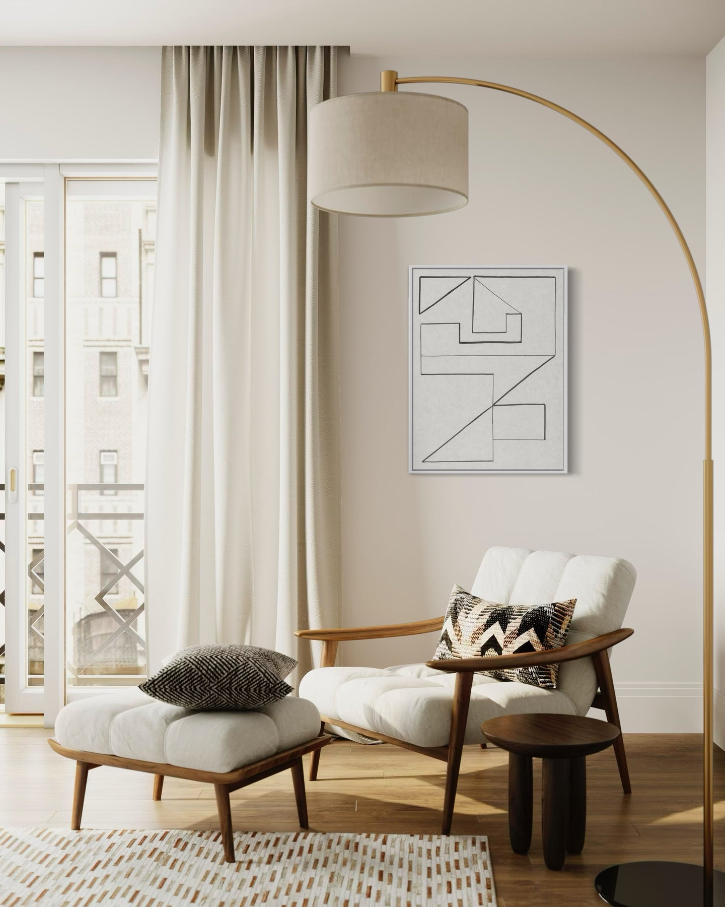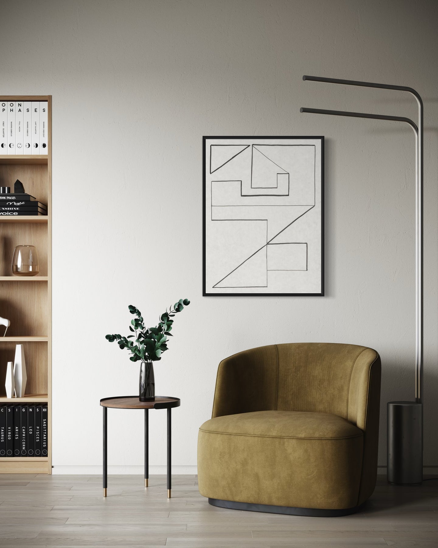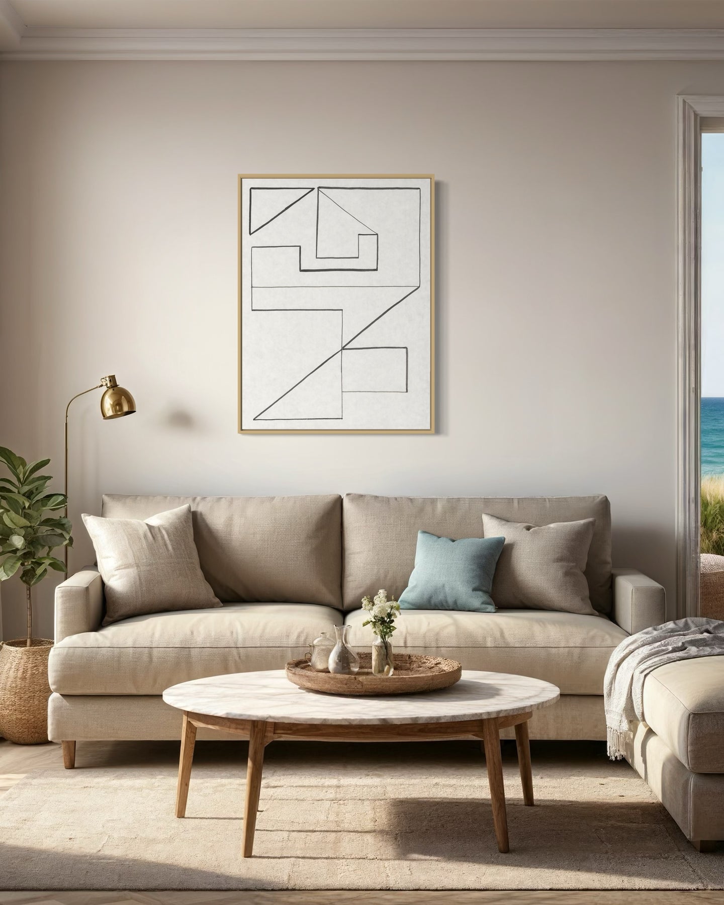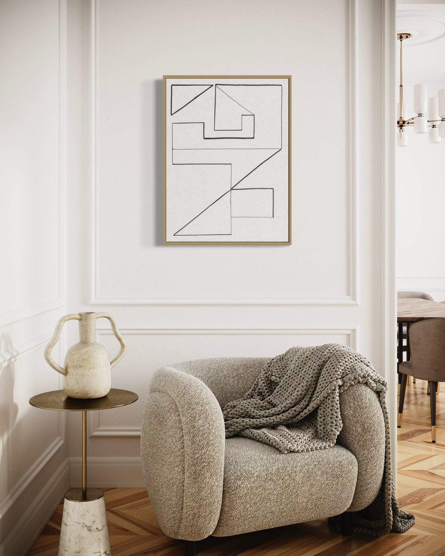 "Angular Encounter I" introduces lines and shapes that interact with one another, creating a sense of interconnectedness and harmony.